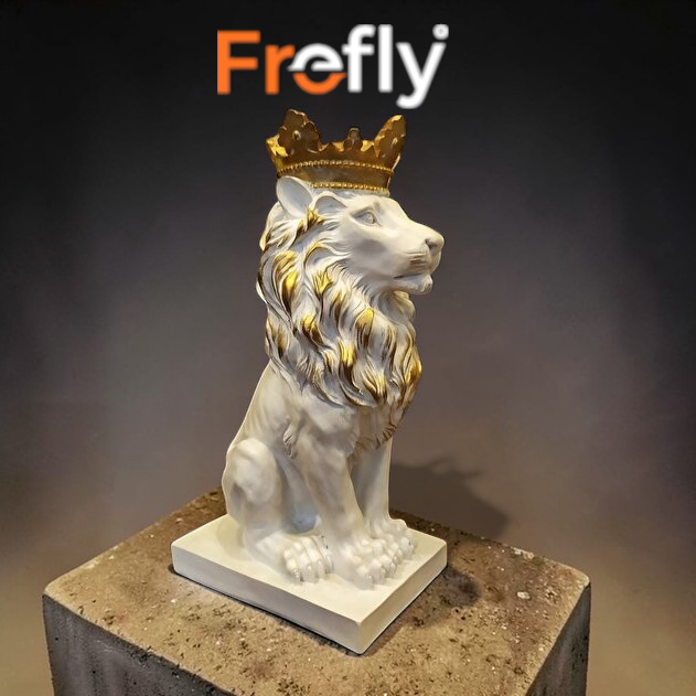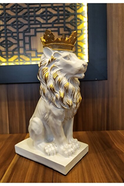 Gold Taçlı Aslan Kral Heykeli 35x16 cm Hediyelik Eşya