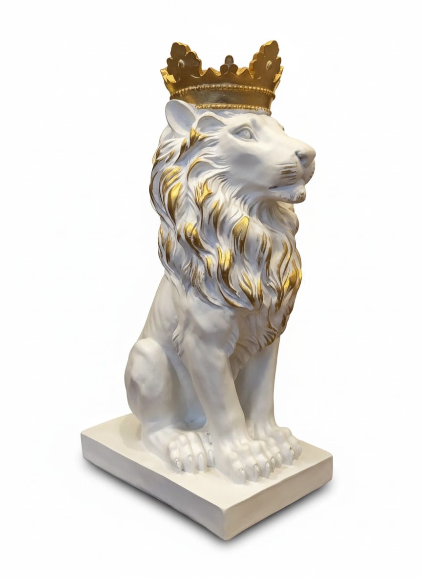 Tasarım: Kaide üzerinde oturan, başında altın renkli bir taç bulunan ve yelesinde altın varak detayları barındıran beyaz aslan figürüdür.