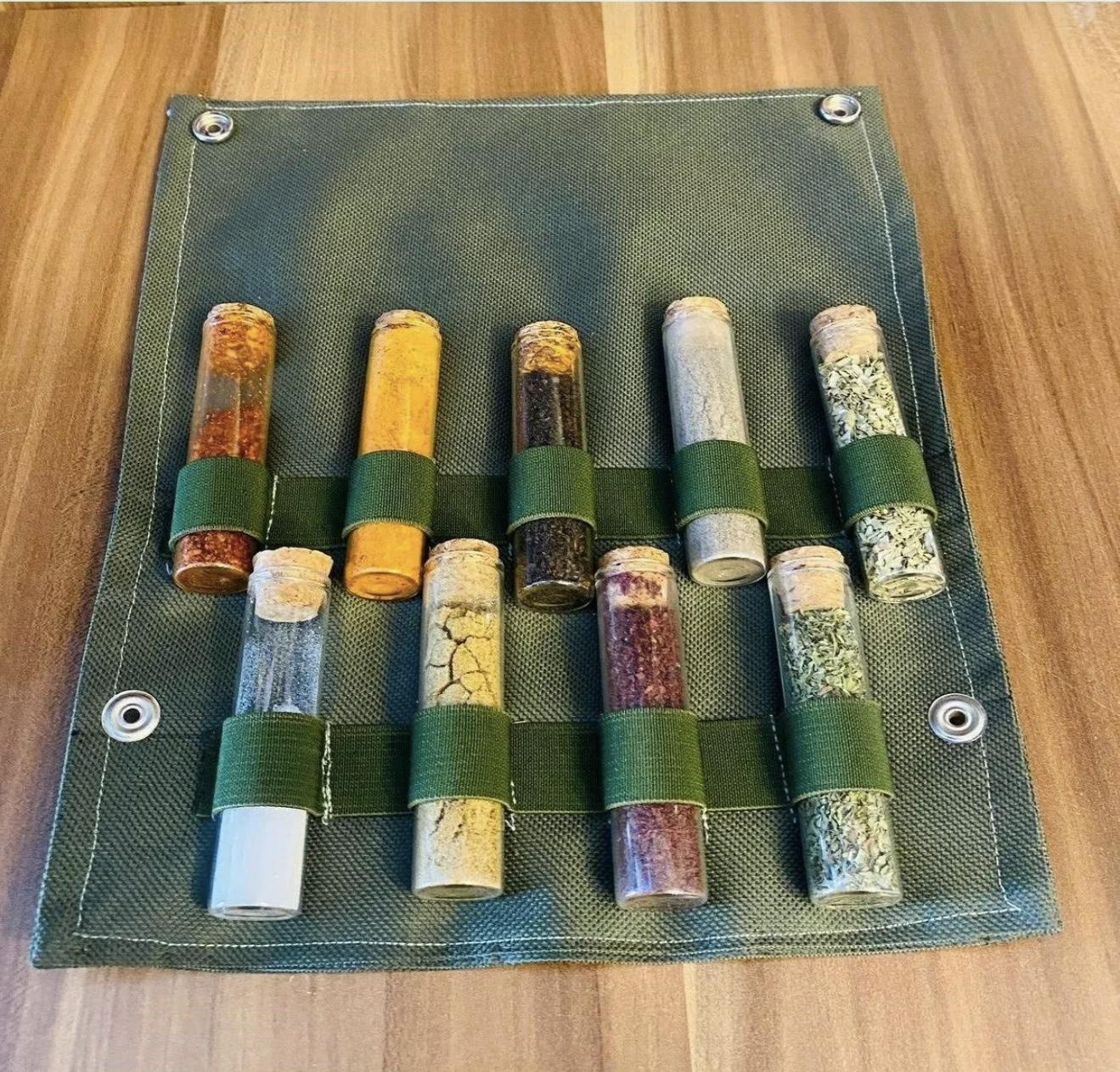 Artik disarida yemek yaparken baharat eksikligi yasamayacaksiniz.Ürün portatiftir, yirtilmaya ve suya dayanikli kumastan yapilmistir.